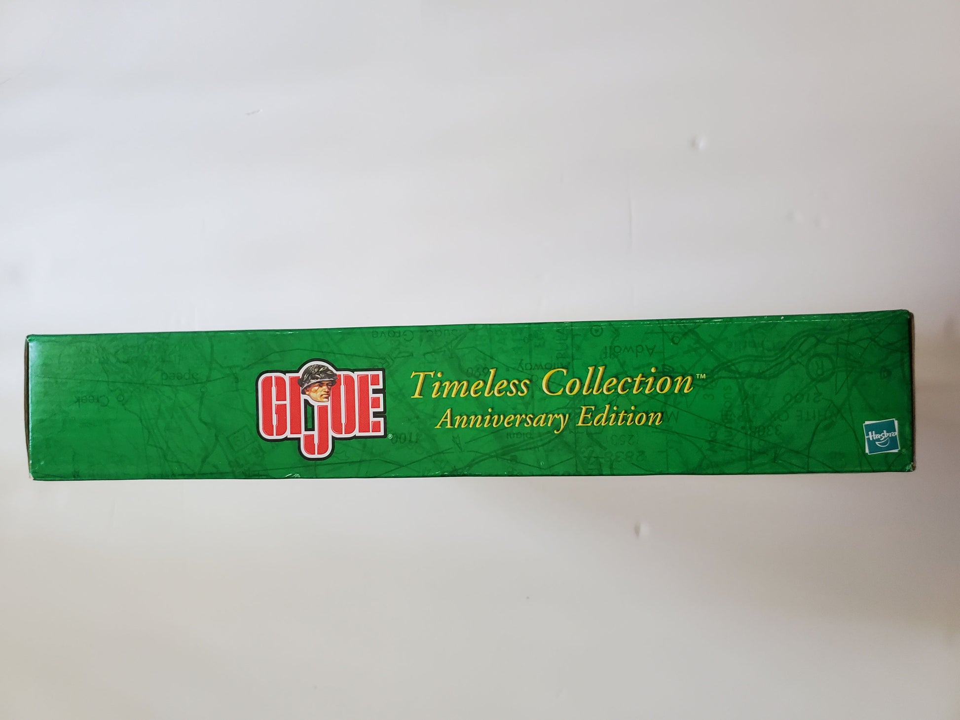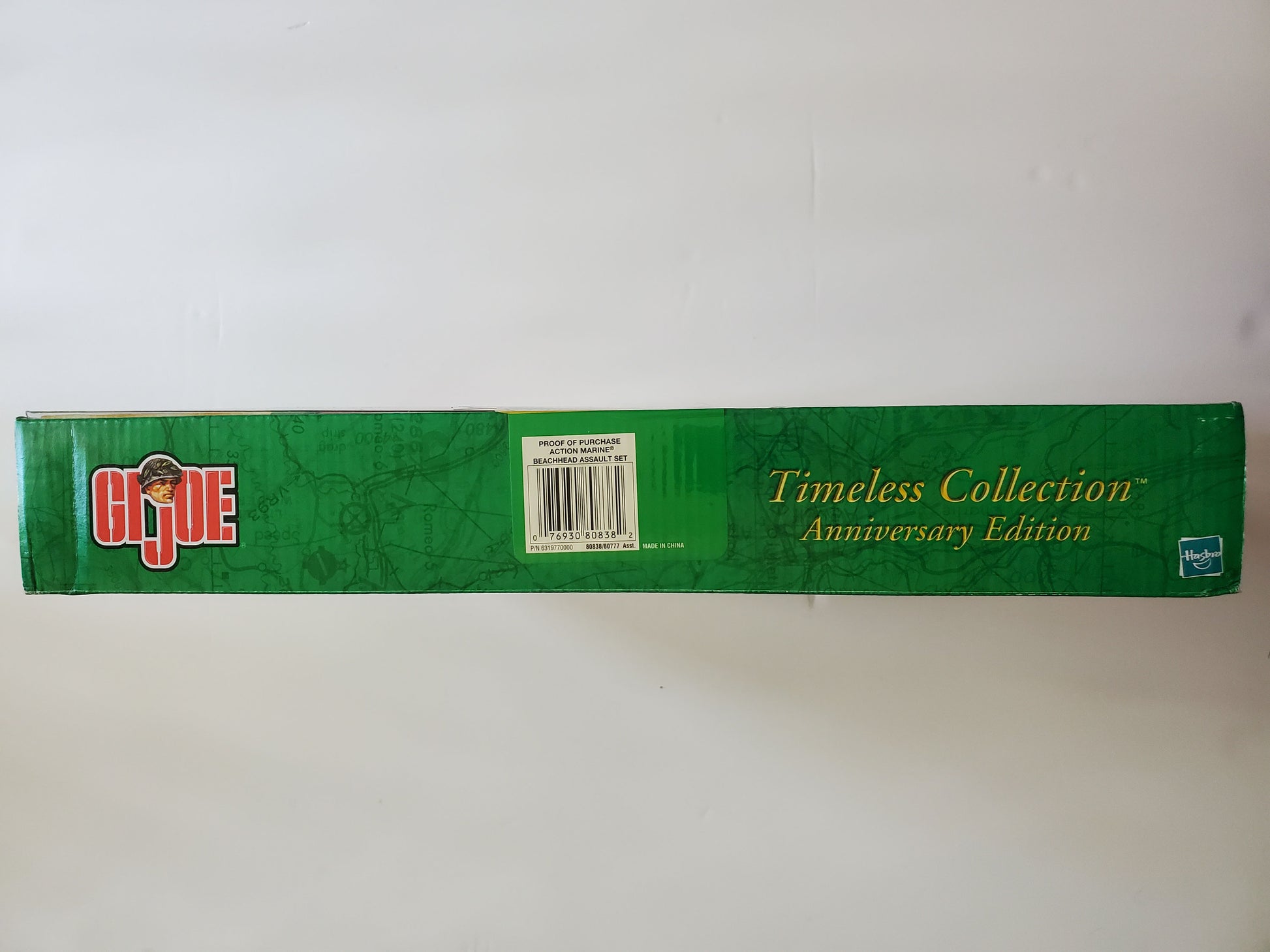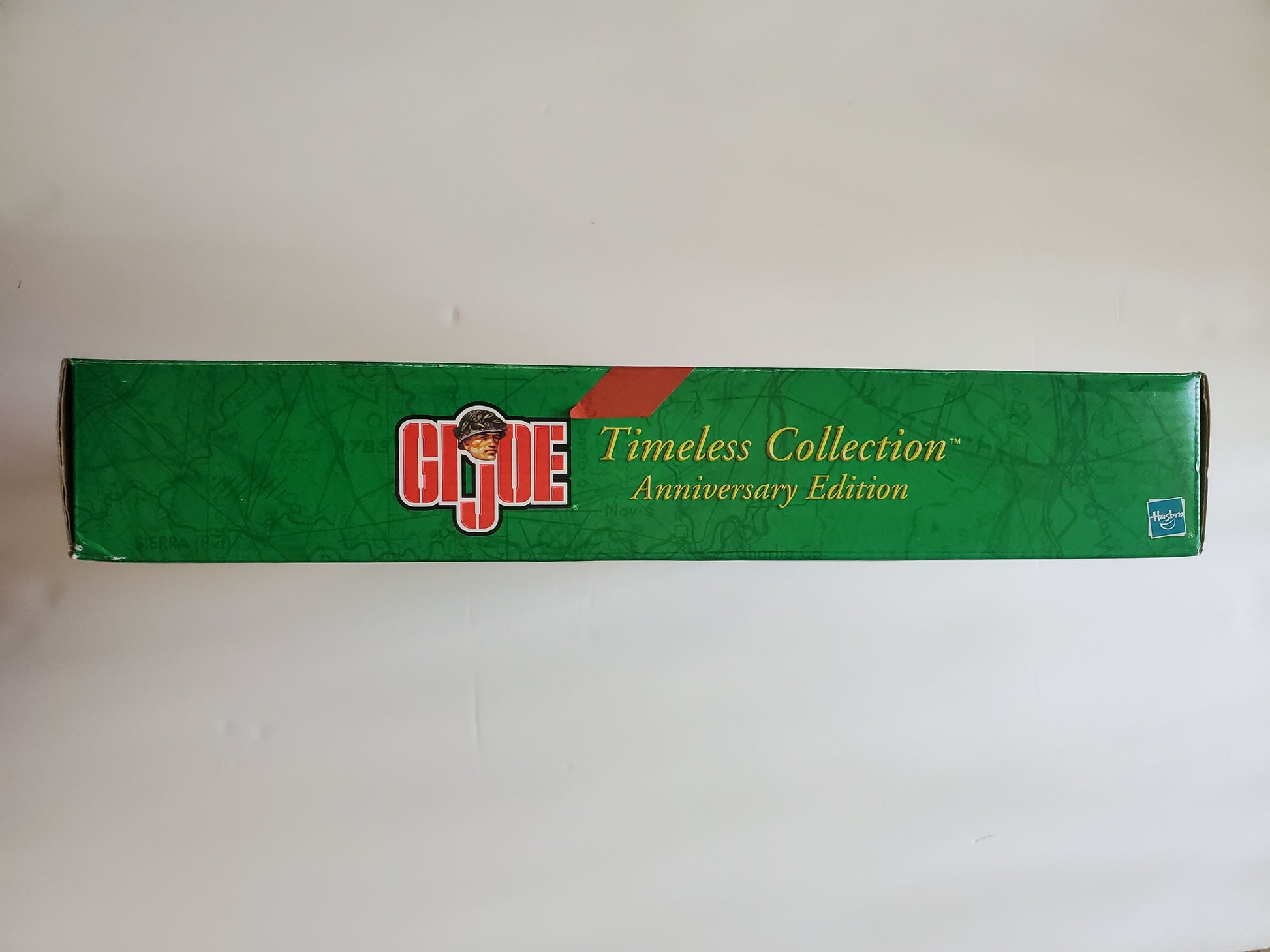 This 40th Anniversary set includes a reproduction of the original Action Marine figure with beachhead assault accessories. The set includes a tent, tent poles and pegs, a flame thrower, a first aid pouch, a pistol belt, a mess kit, a knife, a spoon, a fork, and a Marine field manual. The figure's coffin box comes with a 12-inch figure in a fatigue uniform, a cloth fatigue hat, boots, dog tags, an Marine field manual, and an insignias sheet. This is the 17th set in the 40th Anniversary series.