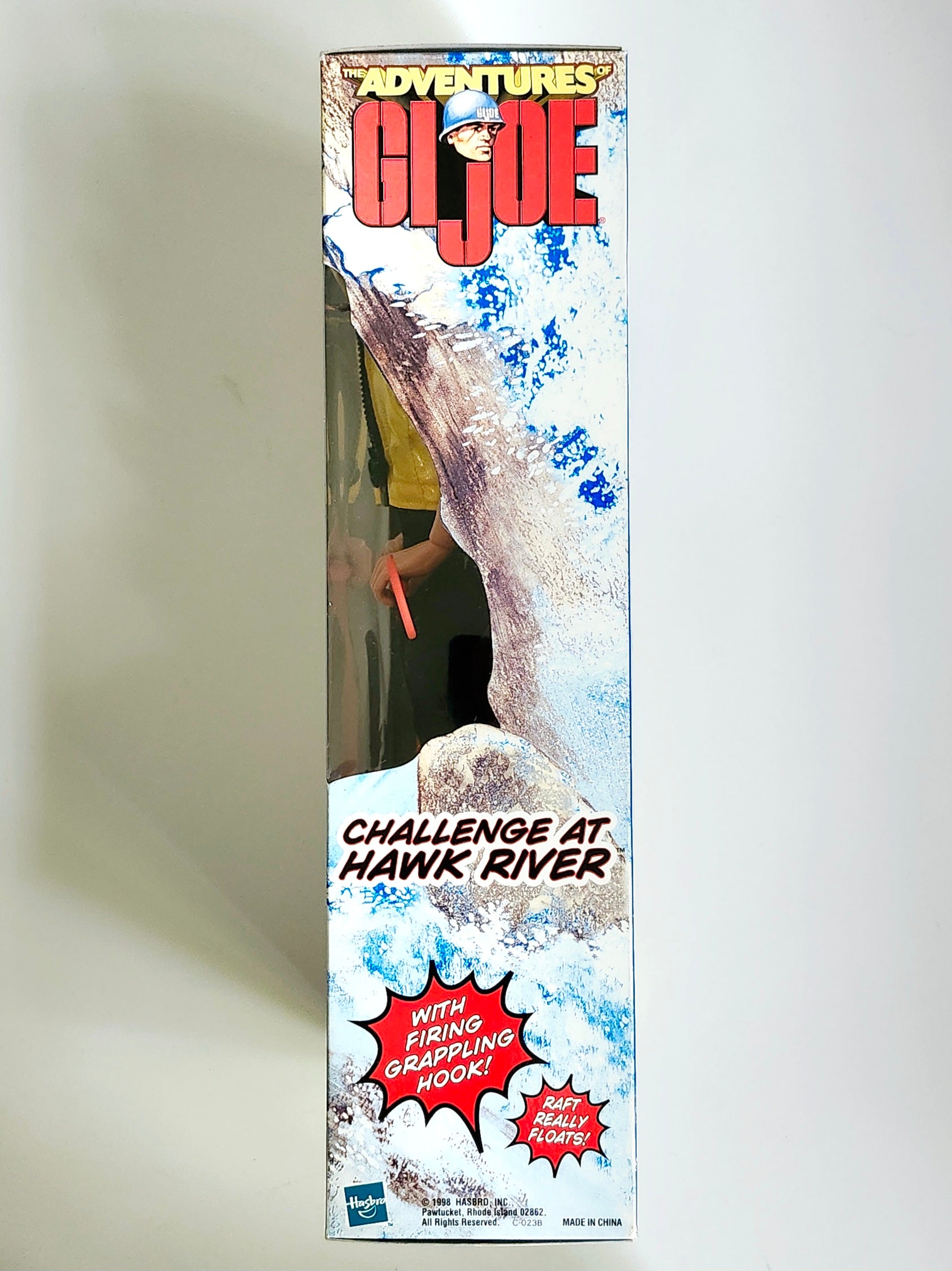 In 1998 Hasbro released this Challenge at Hawk River set which includes a 12-inch G.I. Joe with "life-like" hair and beard, a raft with a paddle, a grappling hook launcher, a flashlight, a life-jacket, a wetsuit, a hawk, a rope, and dog tags.