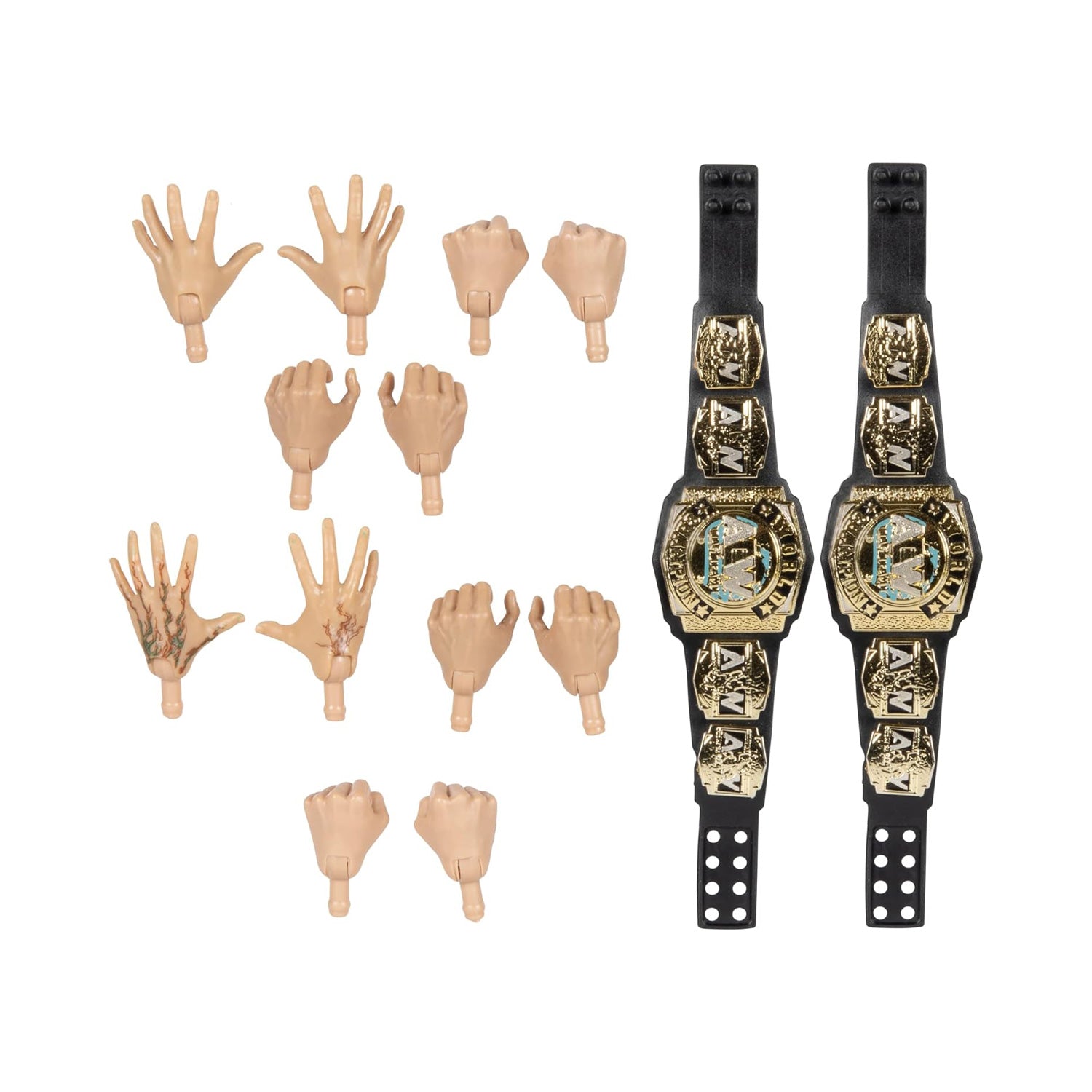 These 6-inch scale action figures of Luchasaurus and Jungle Boy feature 25 points of articulation each. This set features Luchasaurus and Jungle Boy with their traditional in-ring gear, AEW World Tag Team Championship Belts and alternate hands.