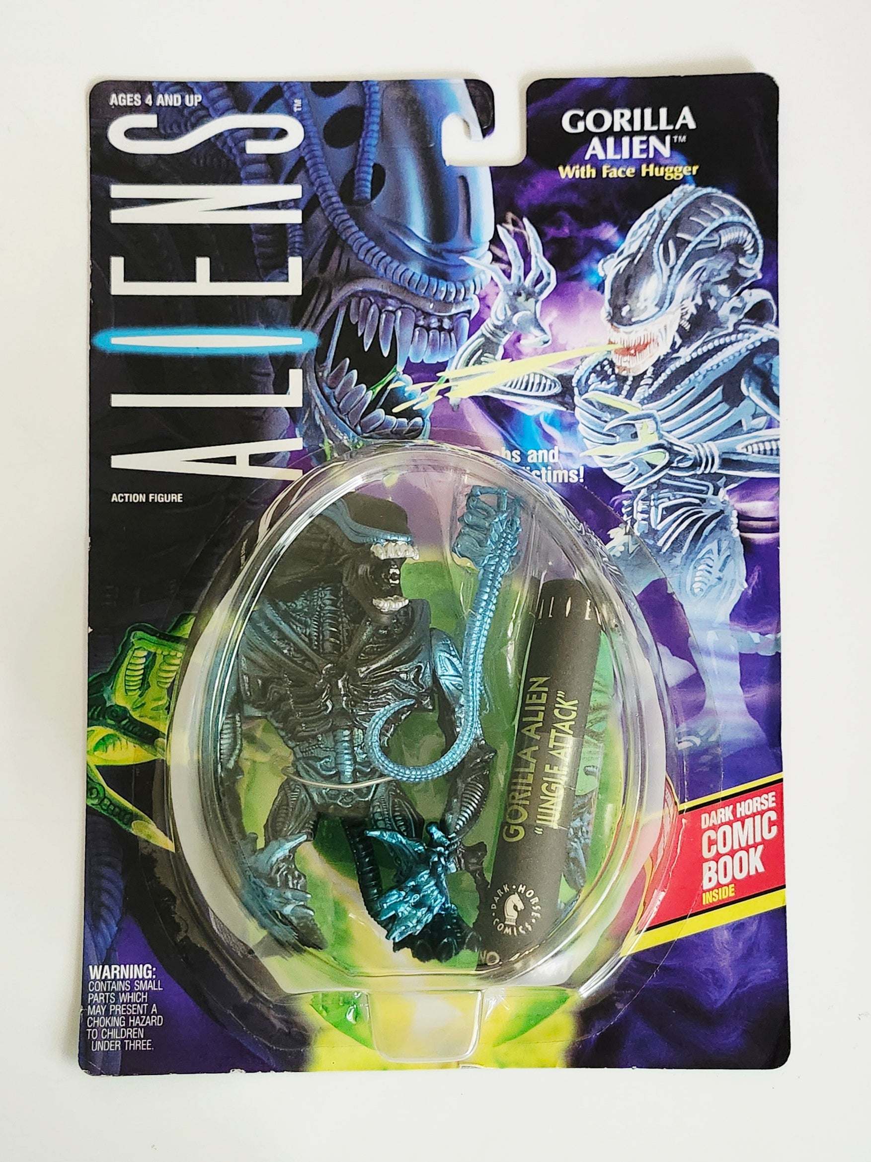 This alien figure from 1992 squirts water from its mouth. Also included is a 16-page comic book.
