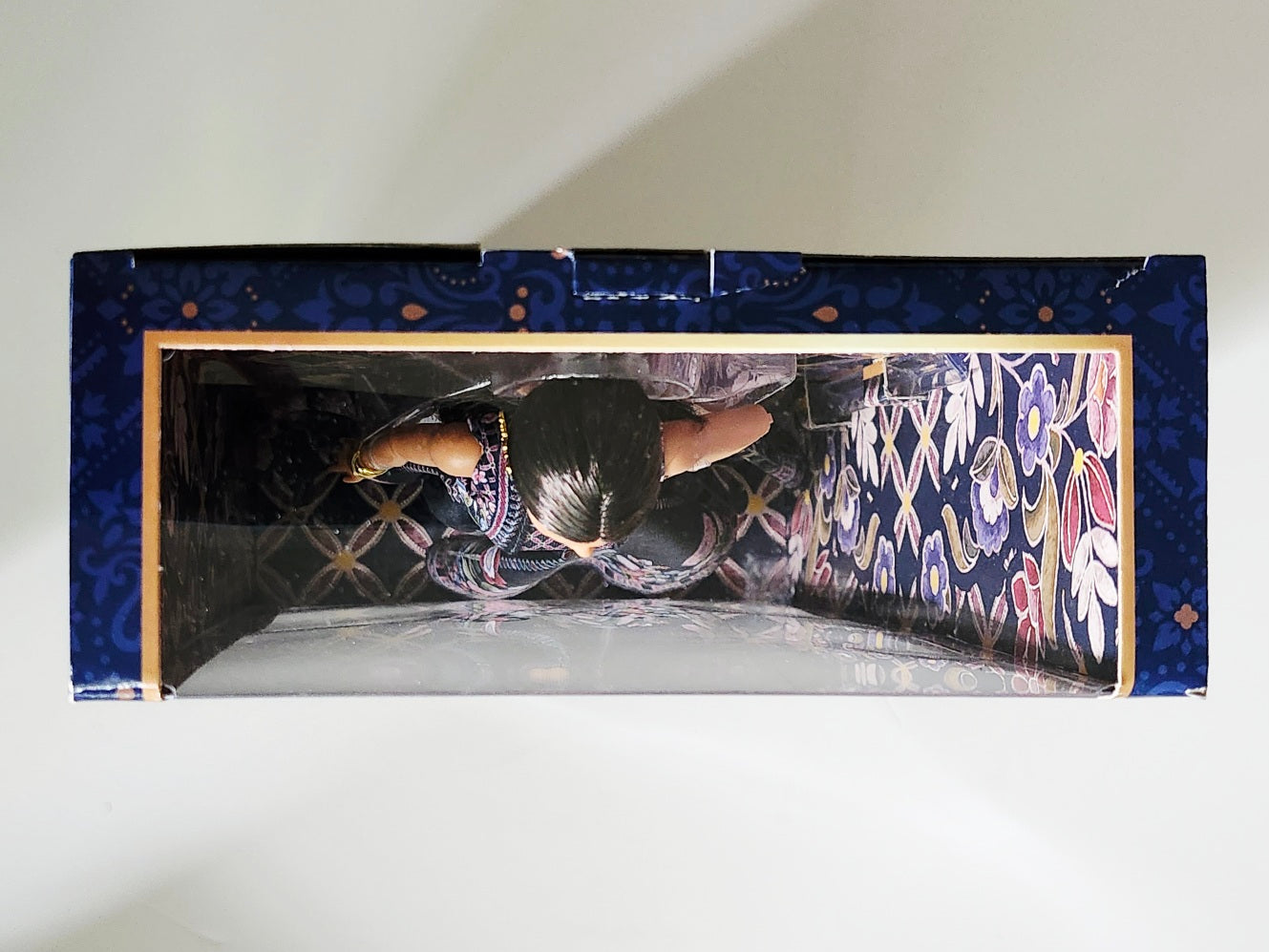 This is the first Diwali Barbie doll made in partnership with visionary and esteemed couturier Anita Dongre. The doll is perfectly radiant in her Moonlight Bloom set, with a choli top and skirt lush with dahlias, jasmines, and an Indian lotus representing strength and beauty. Dongre has designed a shining keepsake to celebrate the Festival of Lights. The set includes a doll stand and a certificate of authenticity.
