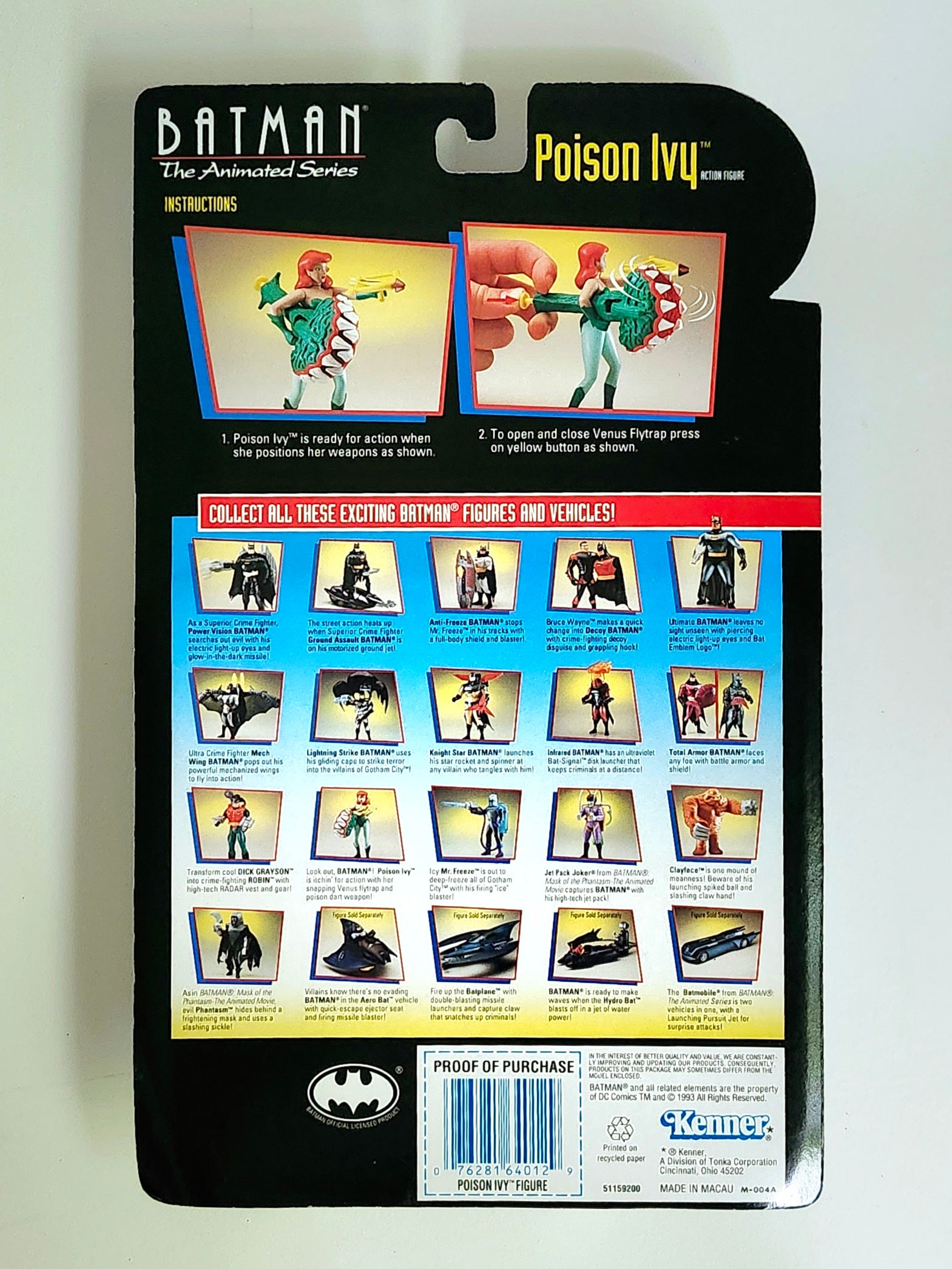 This Poison Ivy figure from Batman: The Animated Series comes with a snapping venus flytrap and a dart weapon accessory. The flytrap opens and closes with the press of a button.