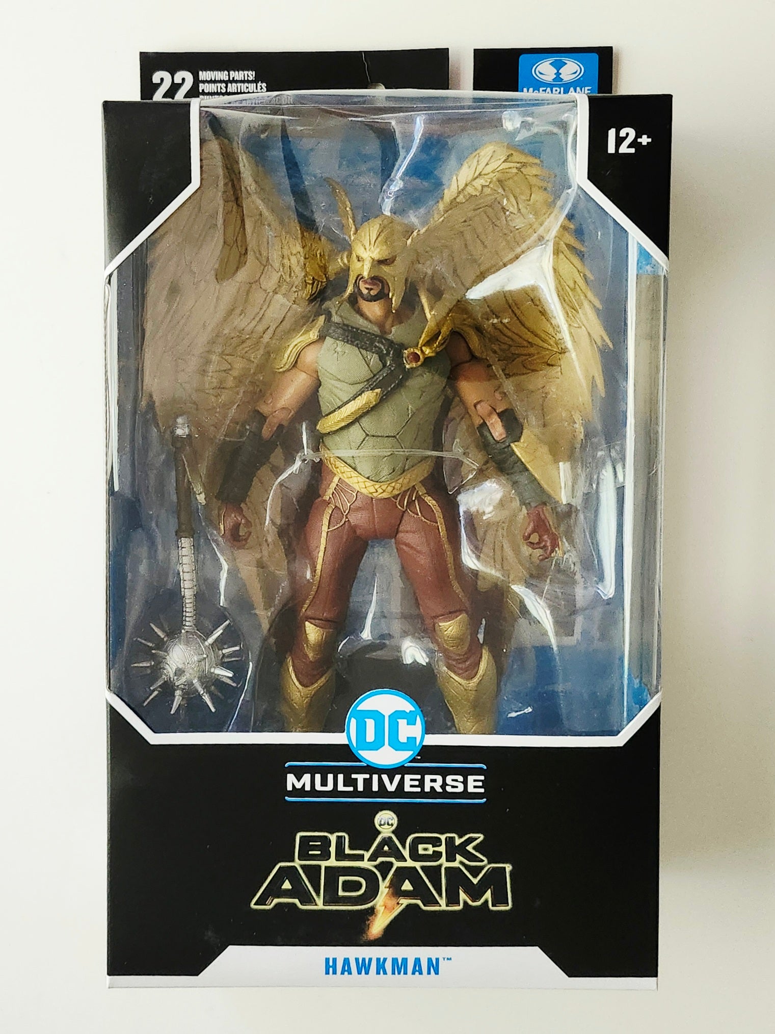 This DC Multiverse action figure features Hawkman from the 2022 Black Adam film. This figure is fully poseable and comes with a mace, movable wings, a display base and an exclusive art card.