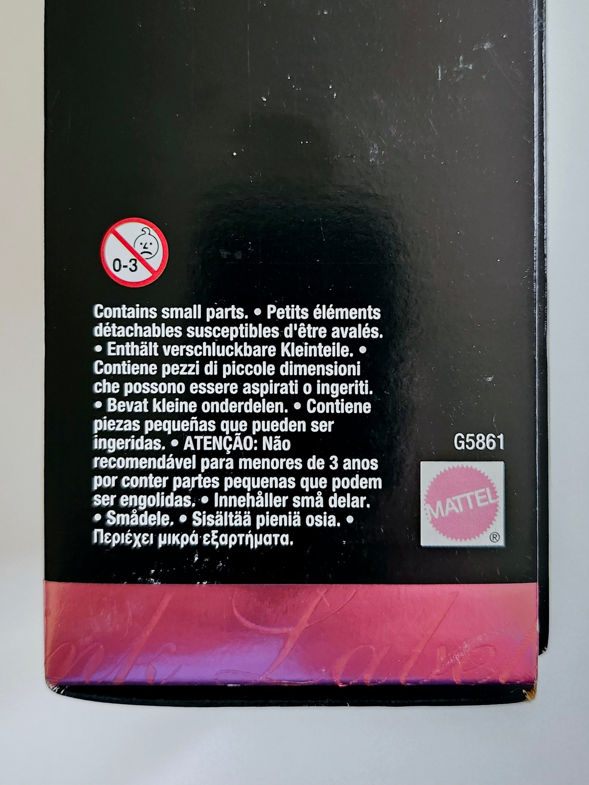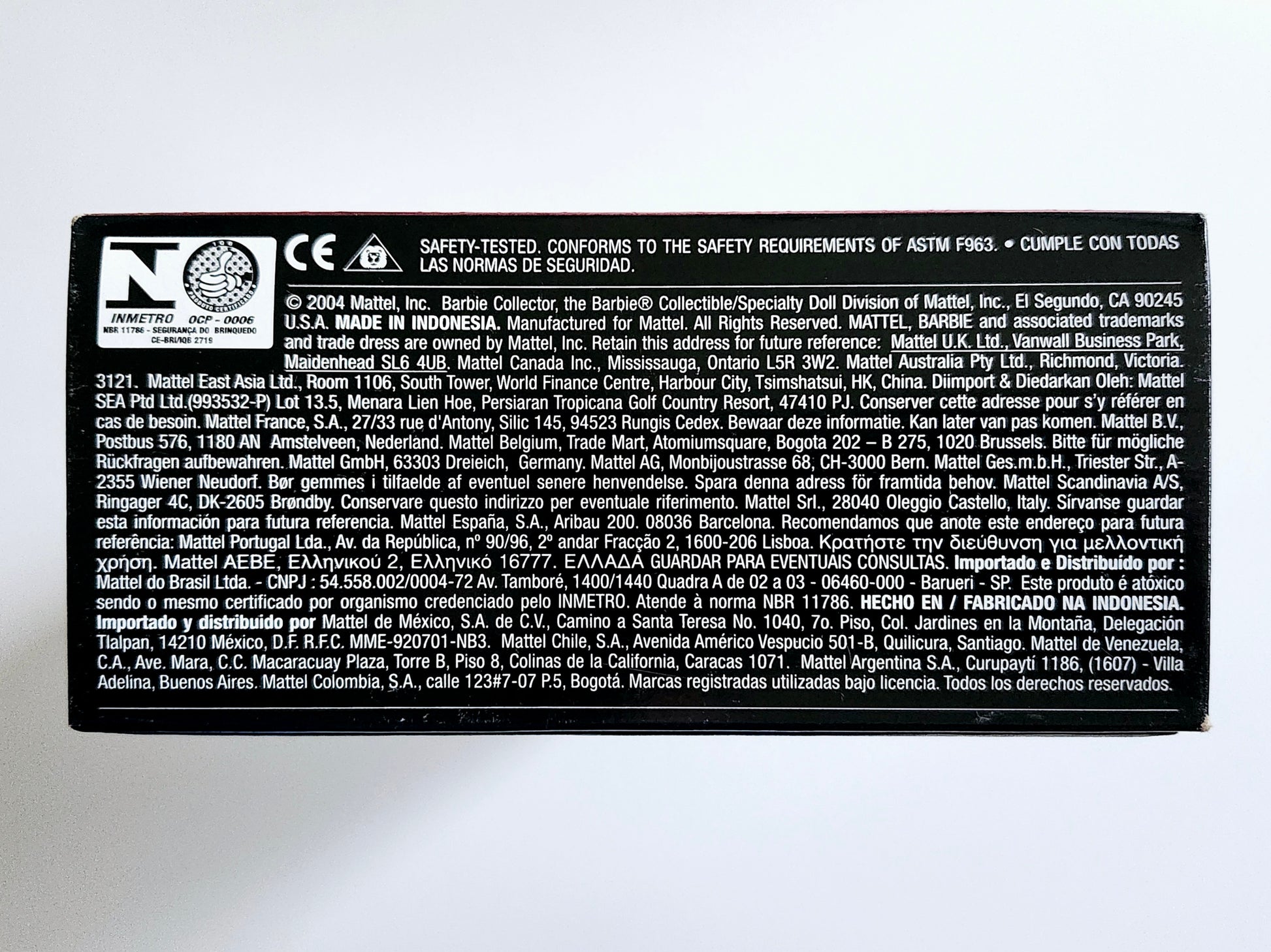 This Princess of Imperial Russia pink label set comes with a Barbie doll wearing a red gown and a gold crown. A collector card and a doll stand are included.