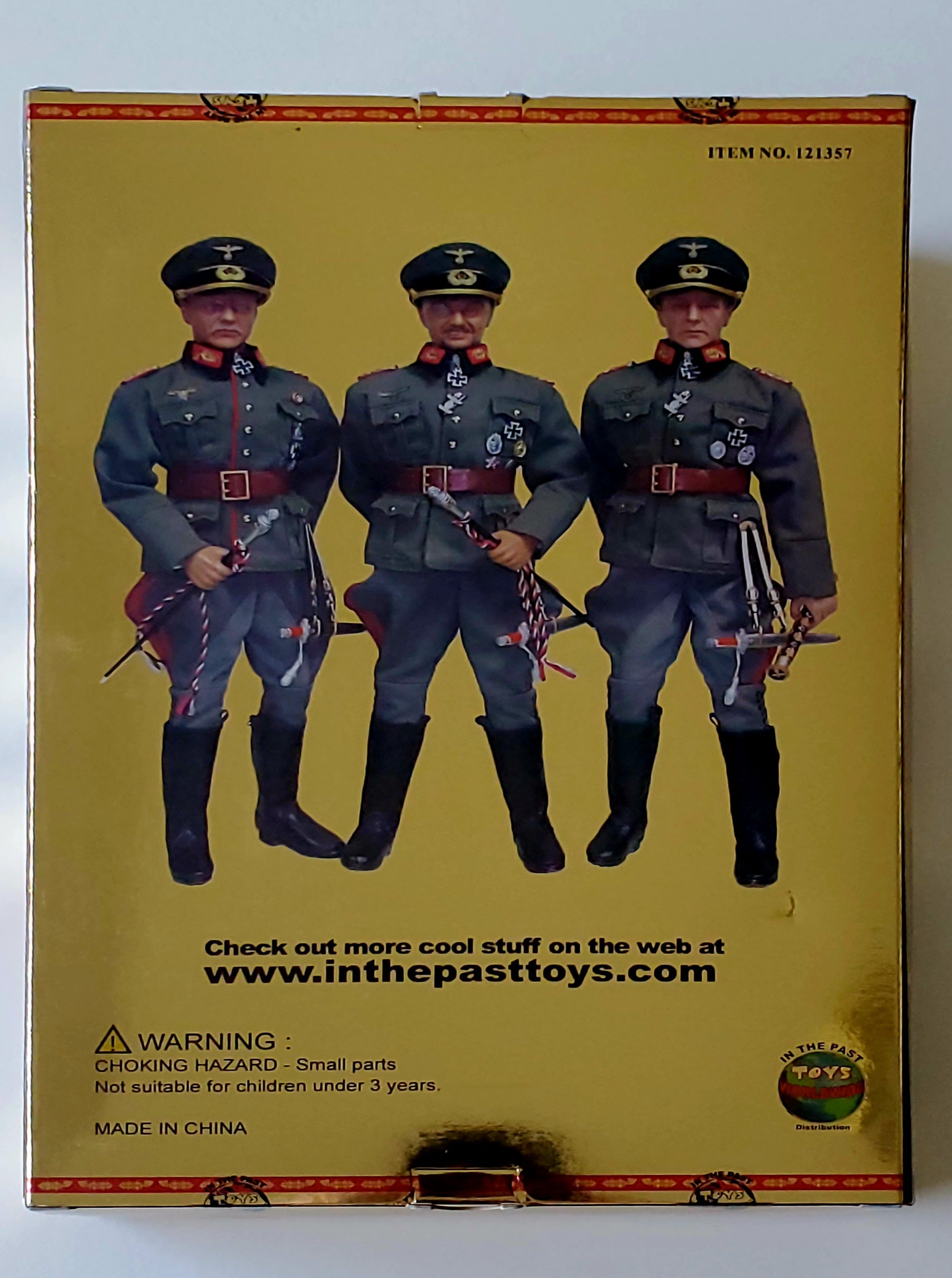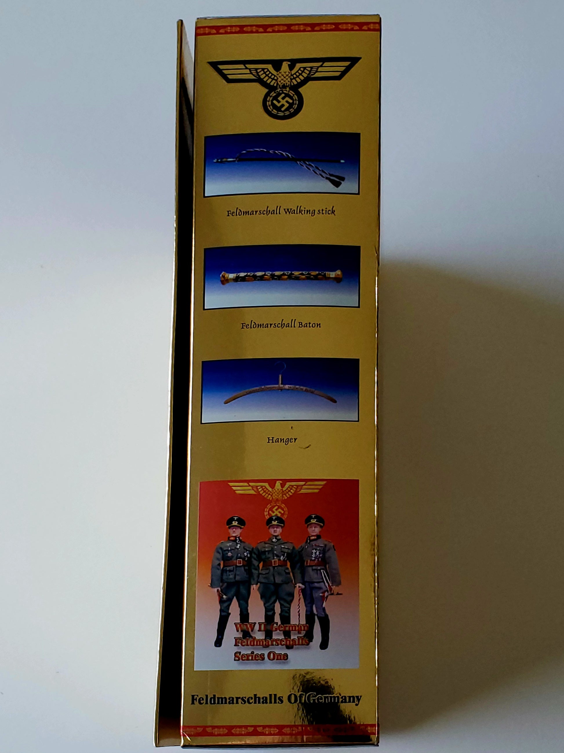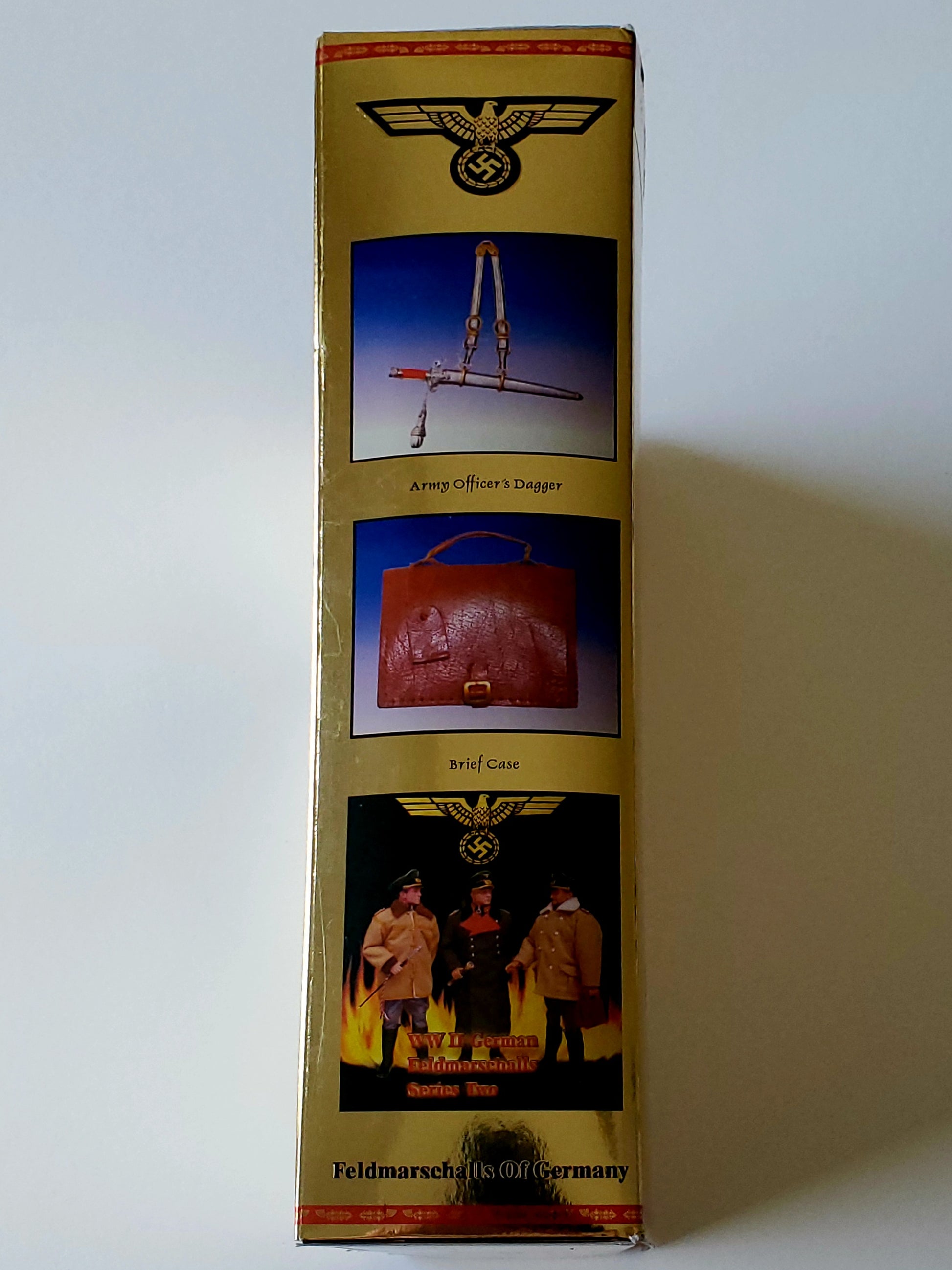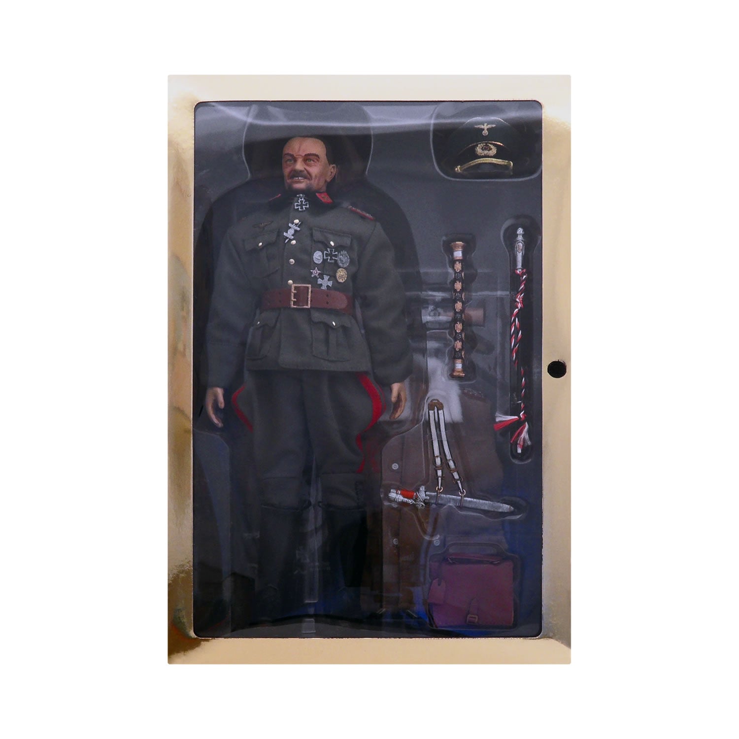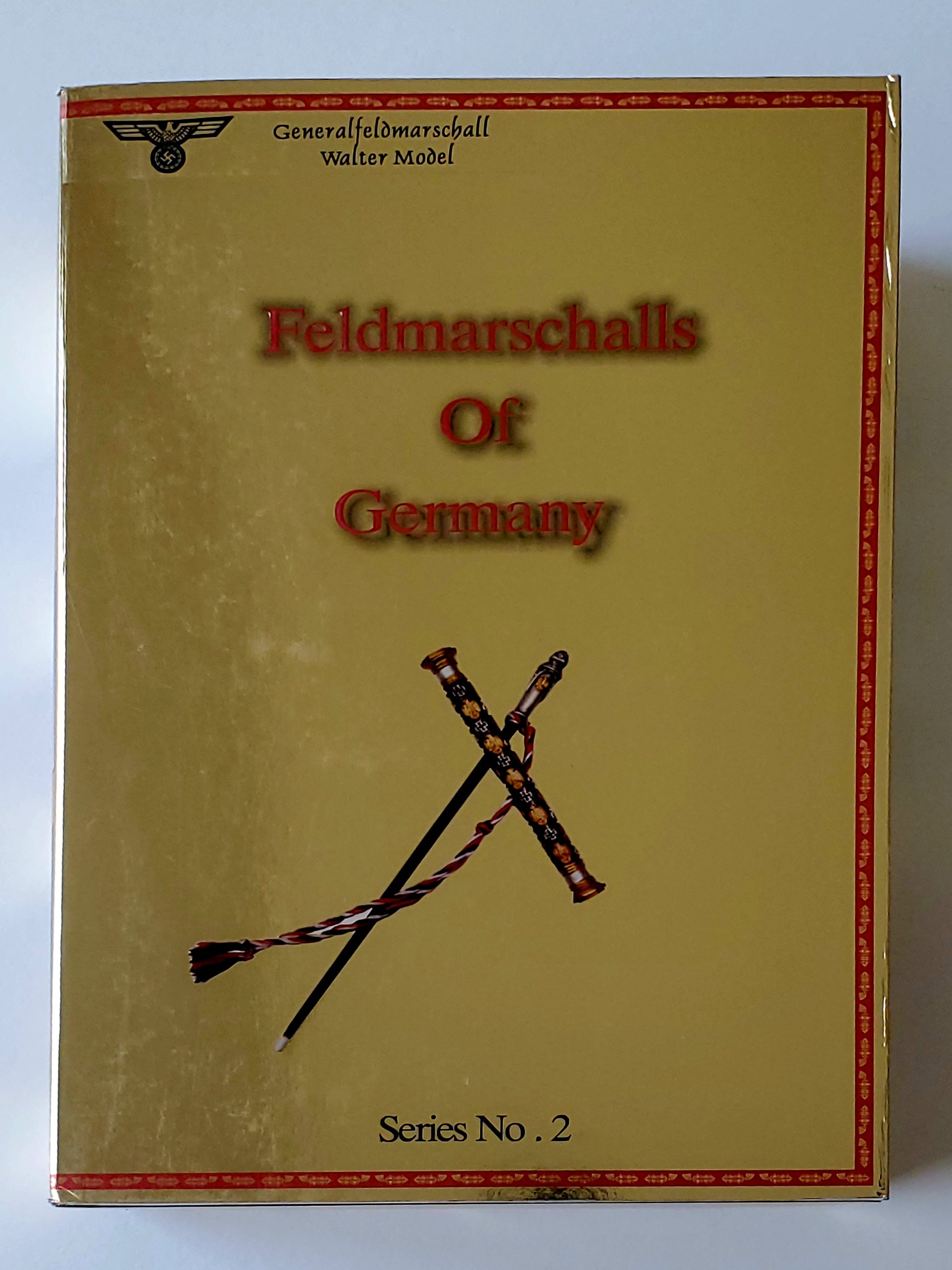 This rare set from In the Past Toys authentically depicts Generalfeldmarschall Walter Model of the German army. The set includes an authentically styled outfit with medals, a Feldmarschall walking stick, Feldmarschall baton, a coat hanger, a coat, an army officer's dagger, and a brief case.