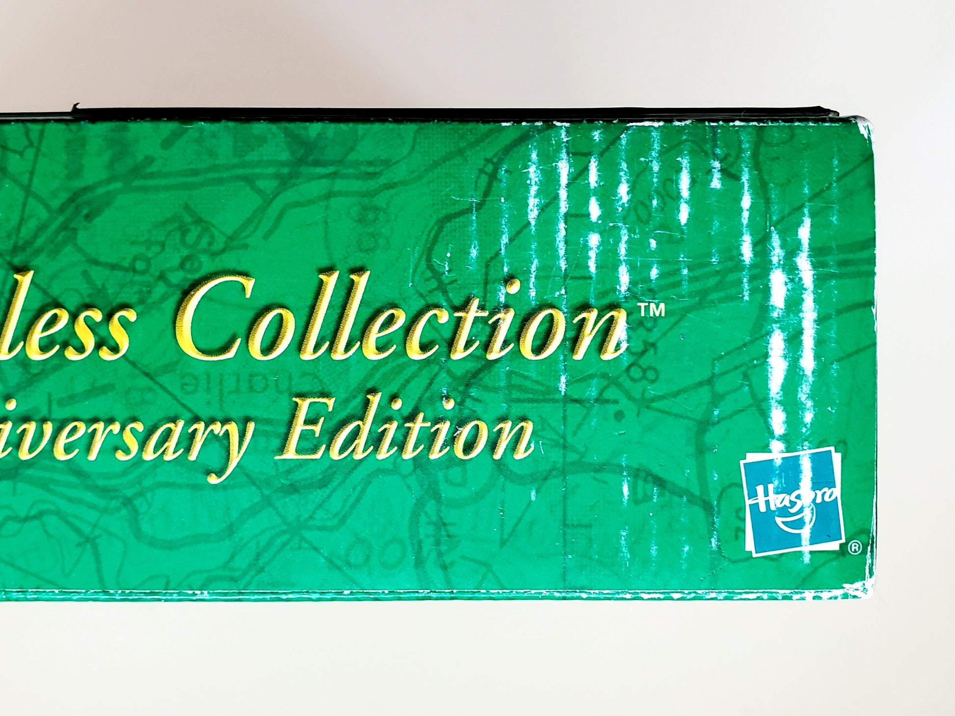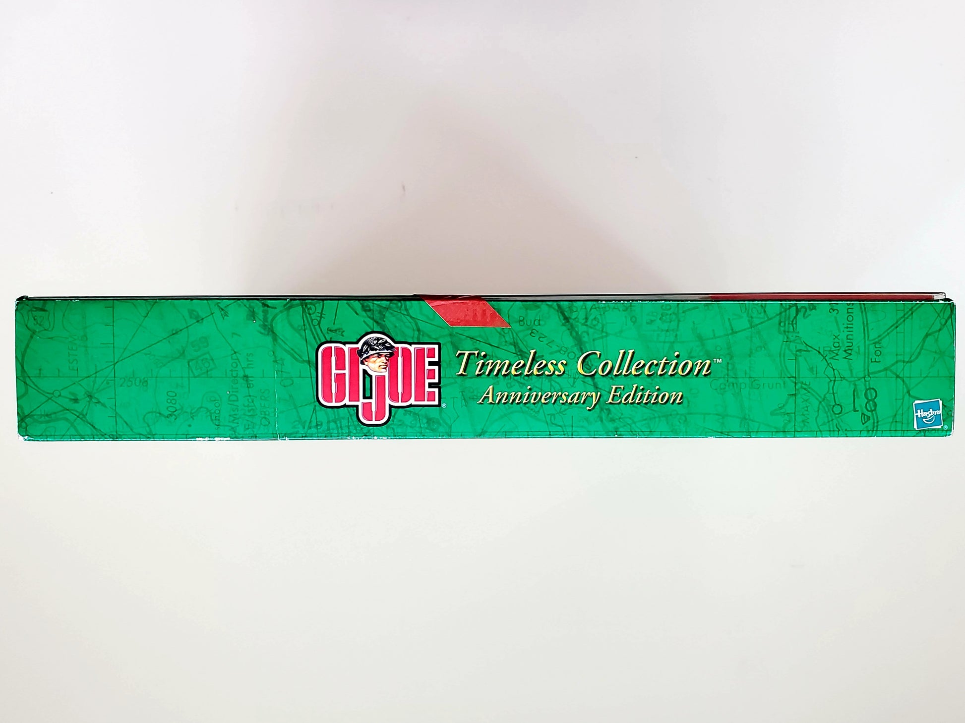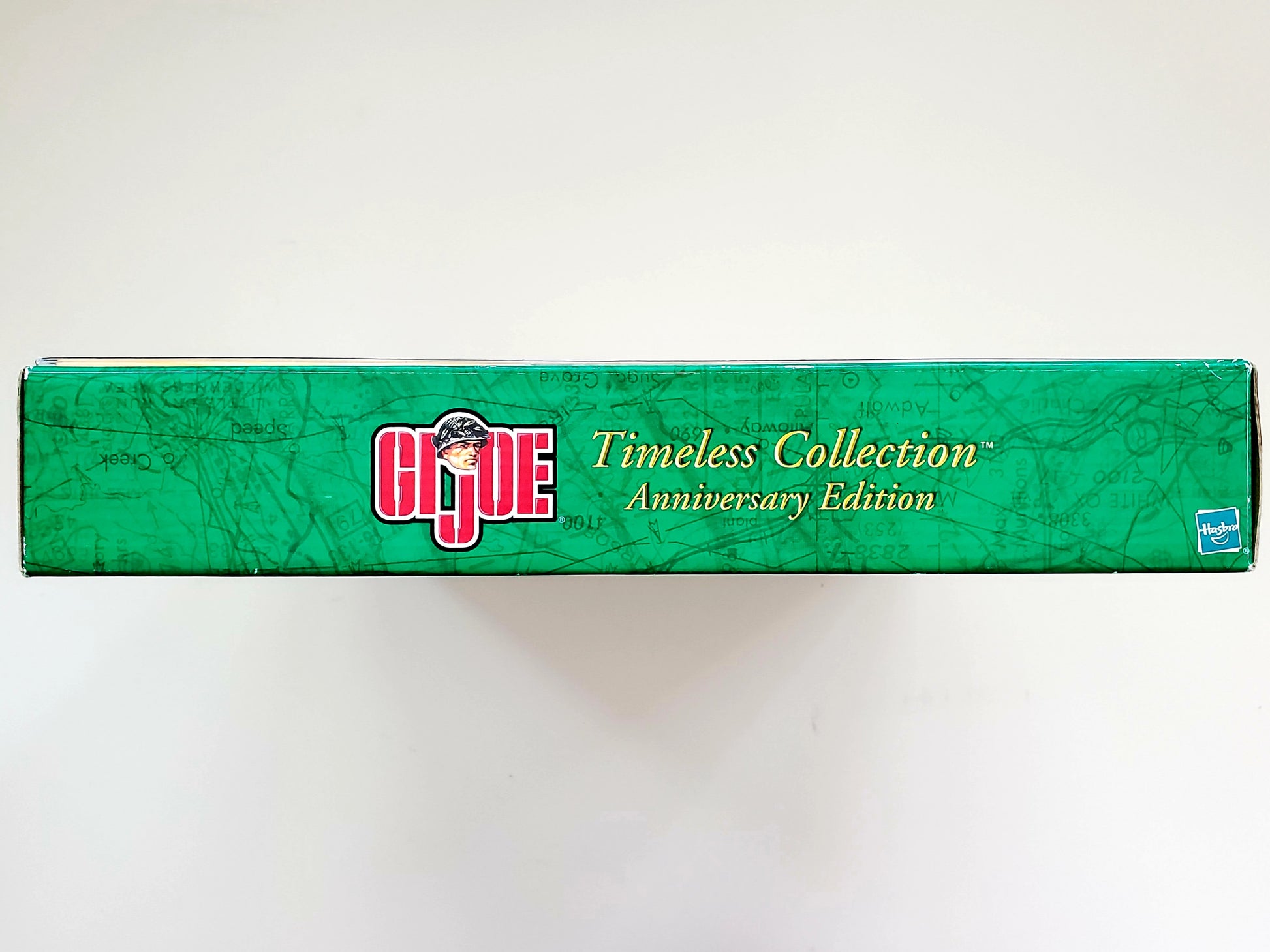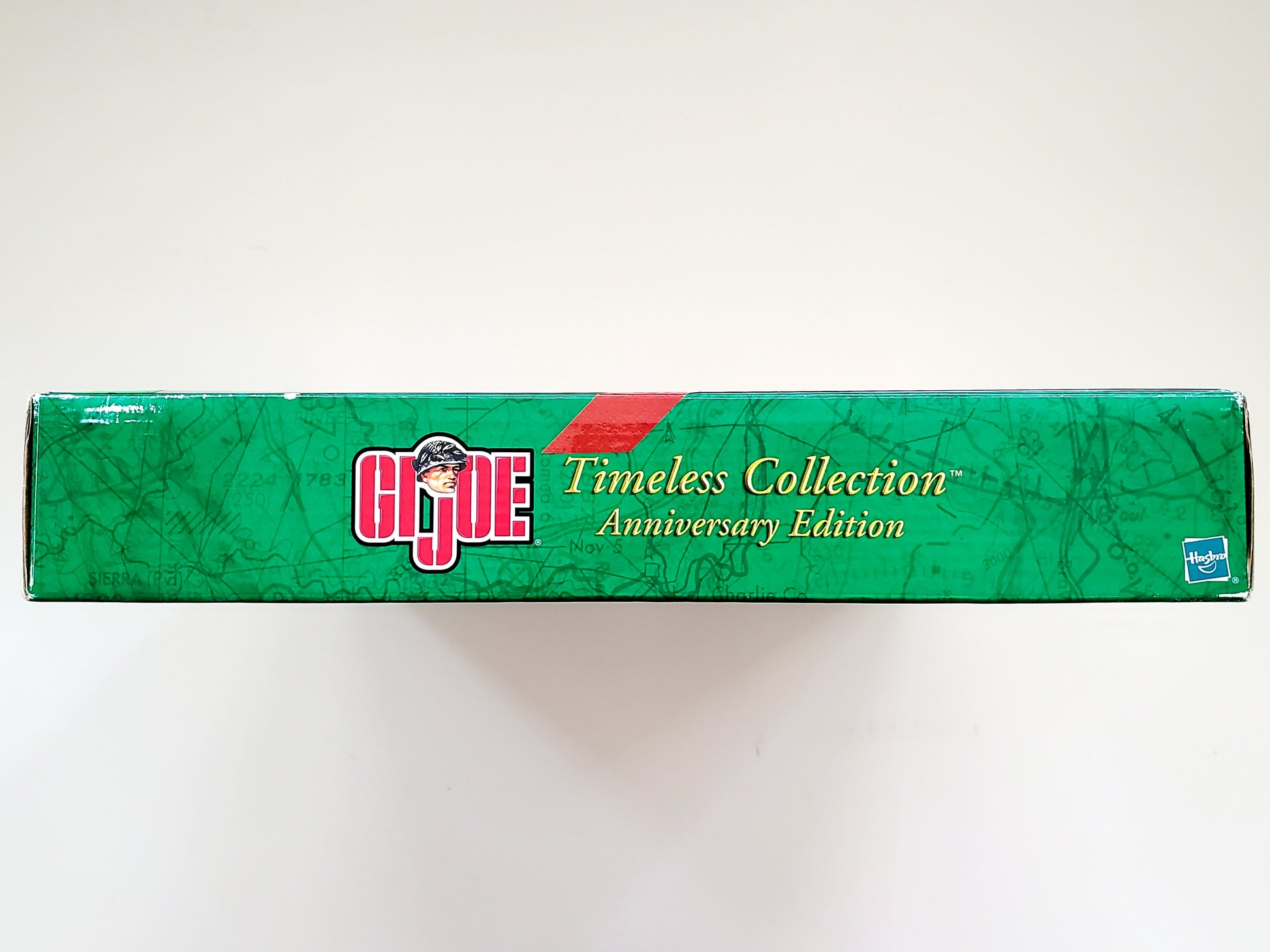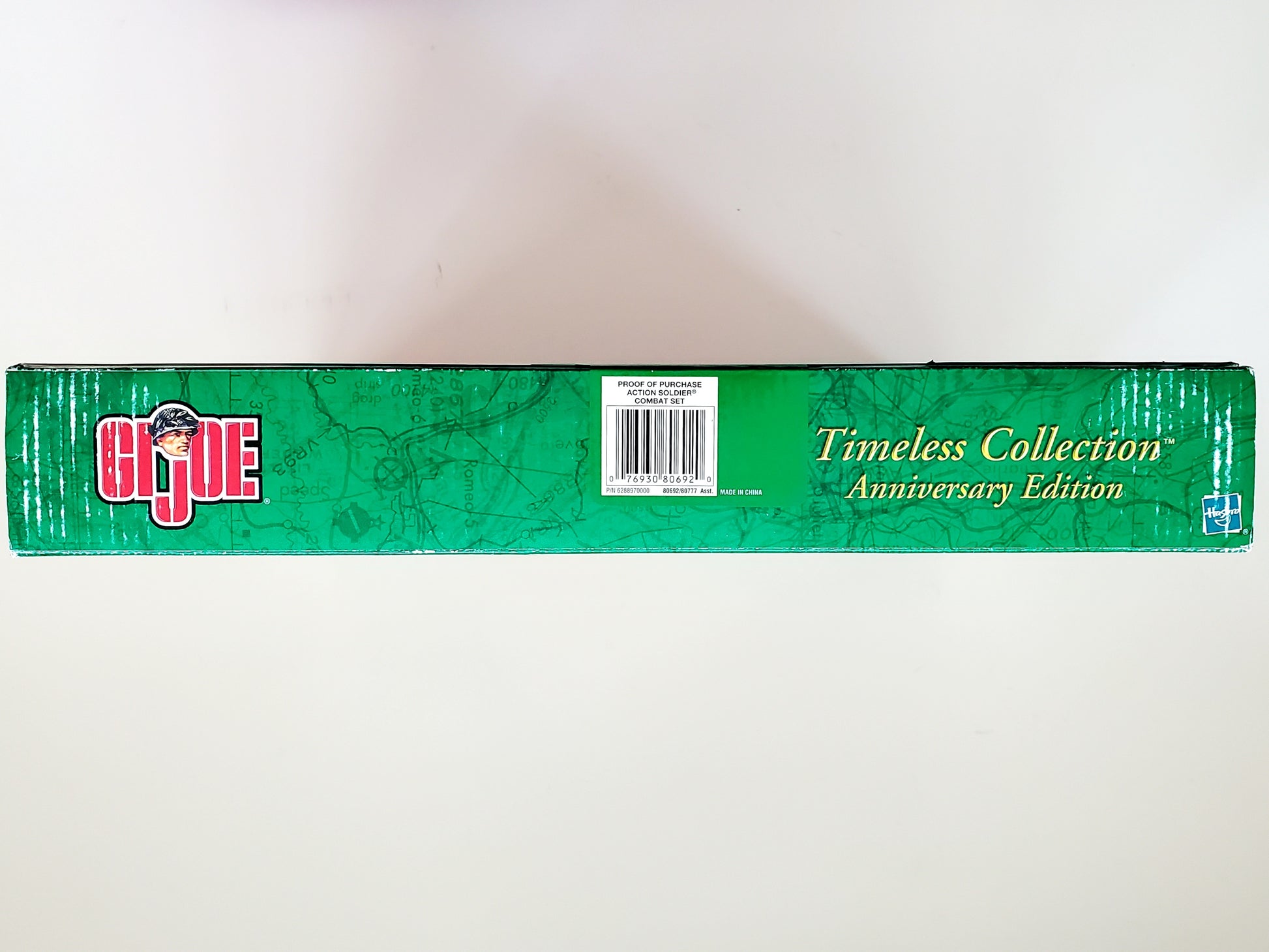 This 40th Anniversary set includes a reproduction of the original Action Soldier figure with special field pack accessories. The set includes a field pack, a pistol belt, a canteen, a canteen cover, a first aid pouch, a mess kit, a knife, a spoon, a fork, an entrenching shovel with a cover, and an Army field manual. The figure's coffin box comes with a 12-inch figure in a fatigue uniform, a PVC fatigue hat, boots, dog tags, an Army field manual, and an insignias sheet. This is the 10th set in the 40th Anniversary series.