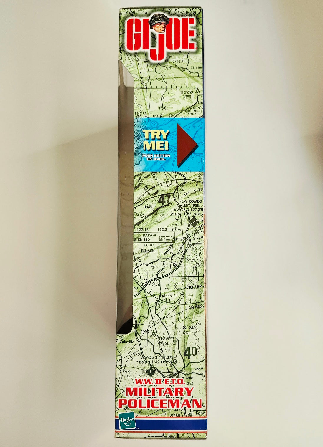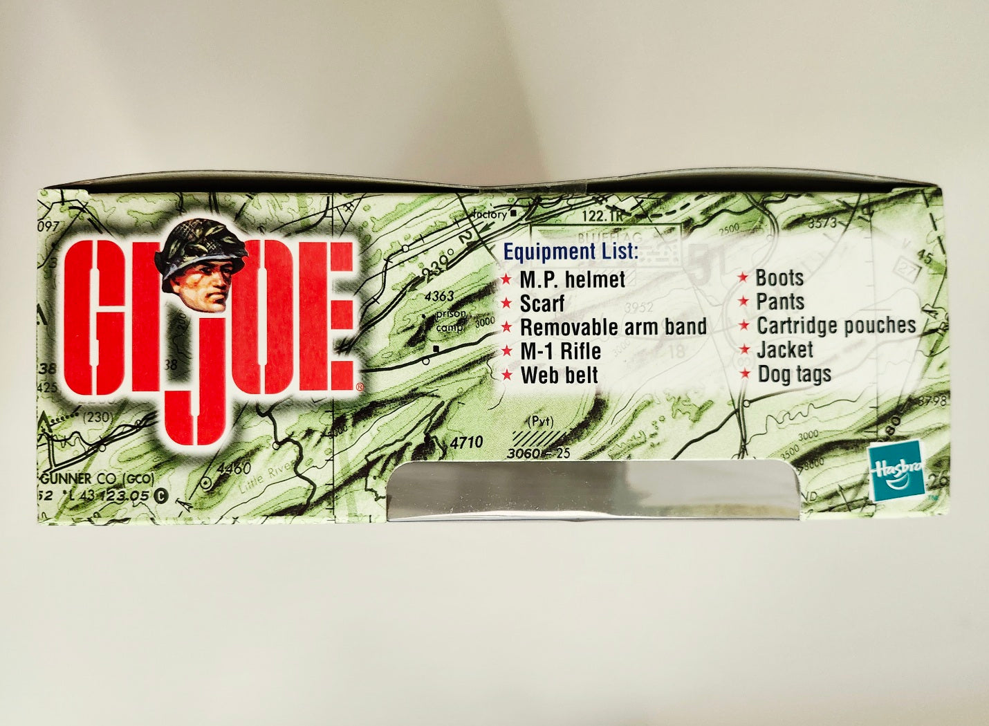 This 1999 WWII Military Policeman set includes a 12-inch talking G.I. Joe with 11 phrases and sounds. The set also includes an M.P. helmet, a scarf, a removable arm band, an M-1 rifle, a web belt, boots, pants, cartridge pouches, a jacket, and dog tags.