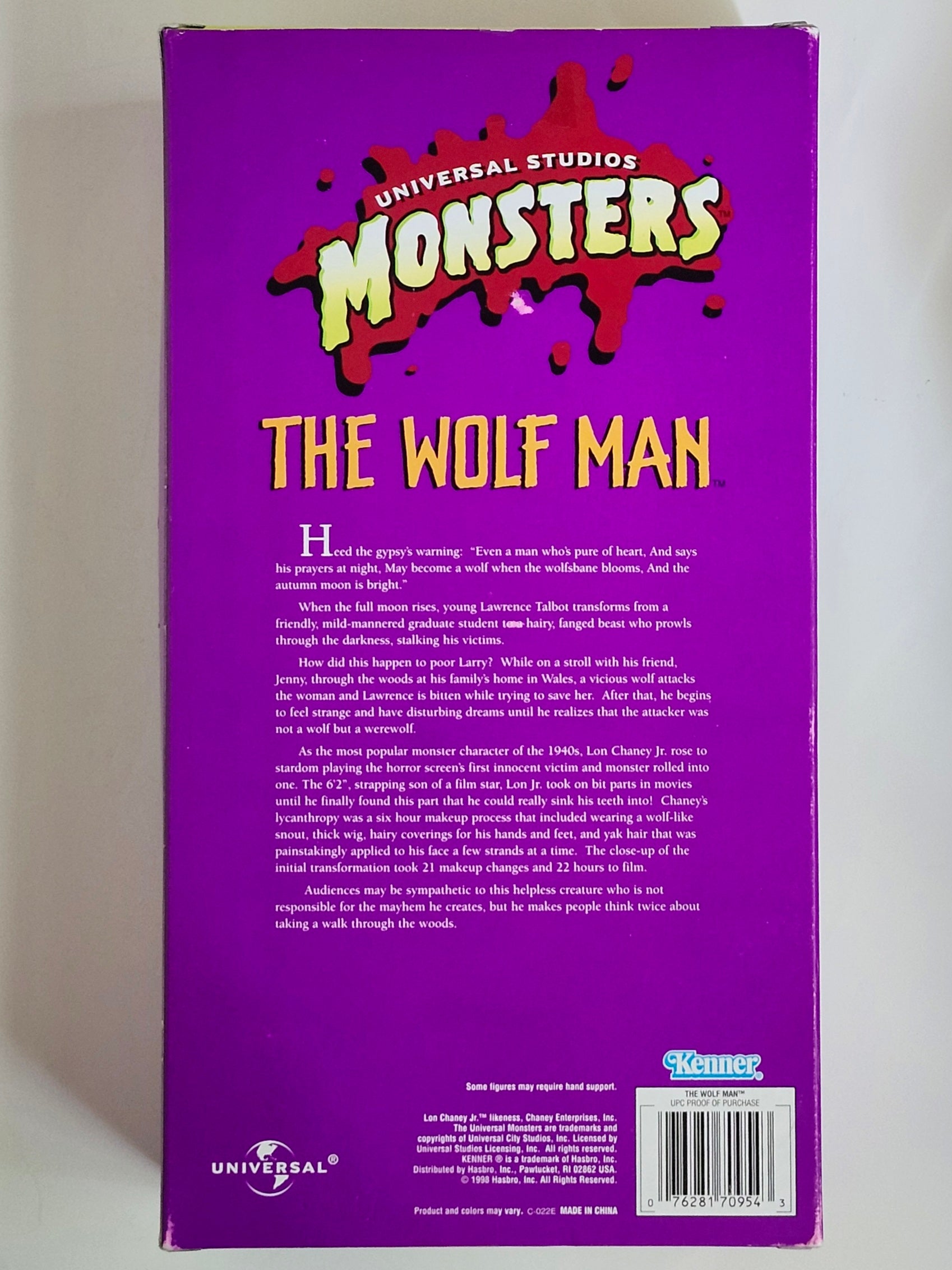 This 12-inch Wolf Man action figure is from Hasbro's Universal Studios Monsters Signature Series. This figure was produced in 1998.