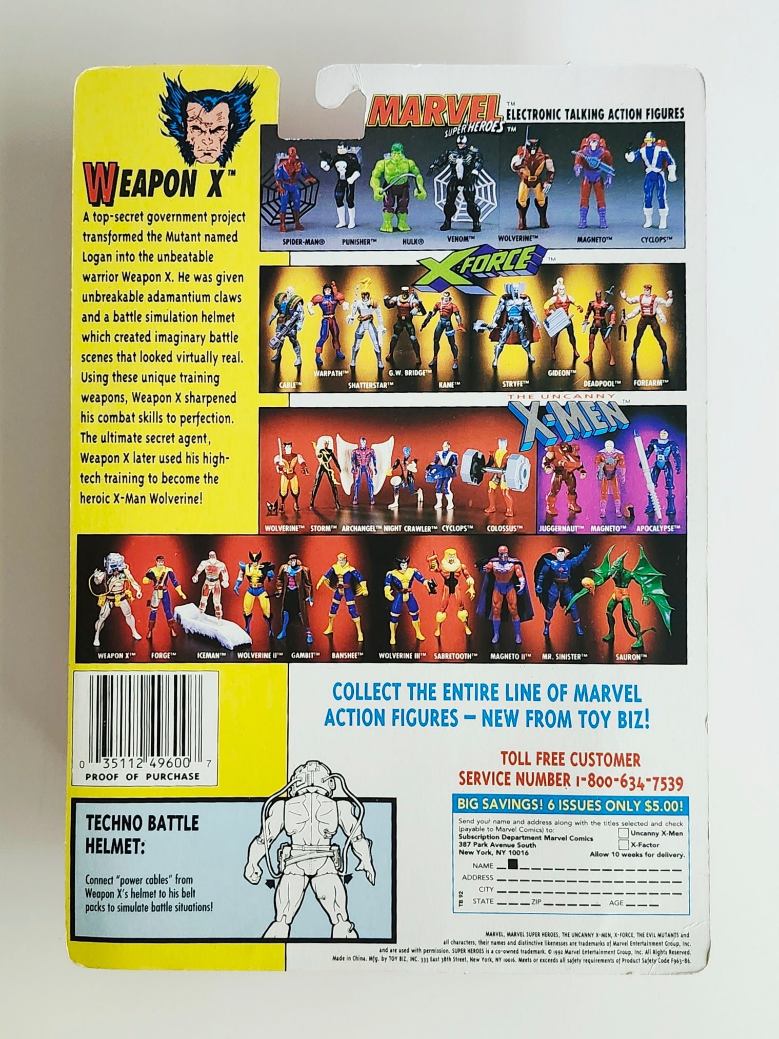 Produced by Toy Biz, this Kay-Bee exclusive 5-inch scale Wolverine action figure variant with red cables features a "high-tech training helmet."