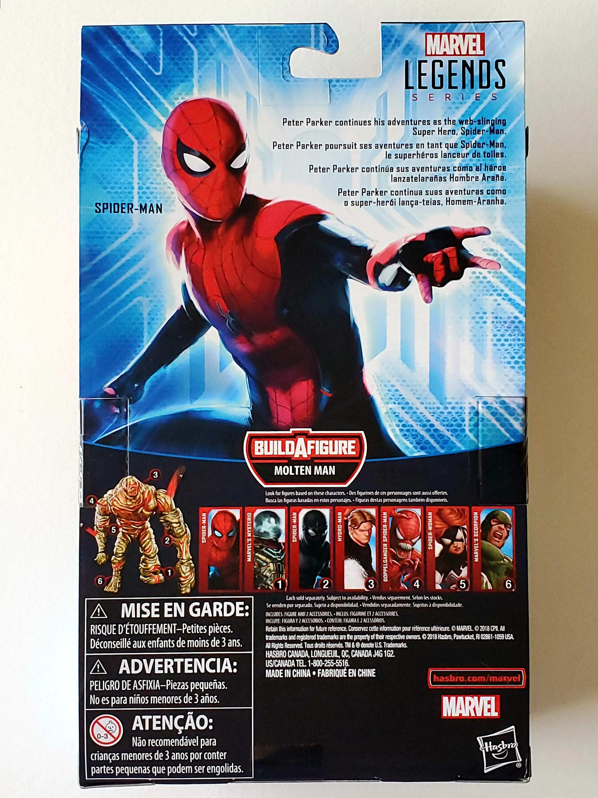 This Marvel Legends Spider-Man action figure based on the 2019 Spider-Man film is highly-detailed and super-poseable. This set includes an extra web-slinging hand and an extra gripping hand.