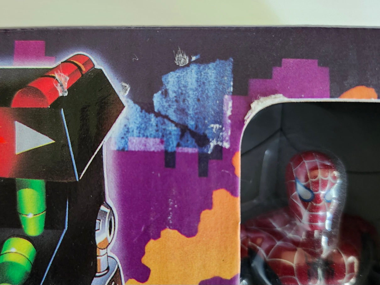 This Scorpion Spider-Slayer vehicle from the Spider-Man series comes with an exclusive Spider-Man action figure and three "spider attack" actions. The pincer claws grab the figure and the tail fires a missile while it rolls on the ground.