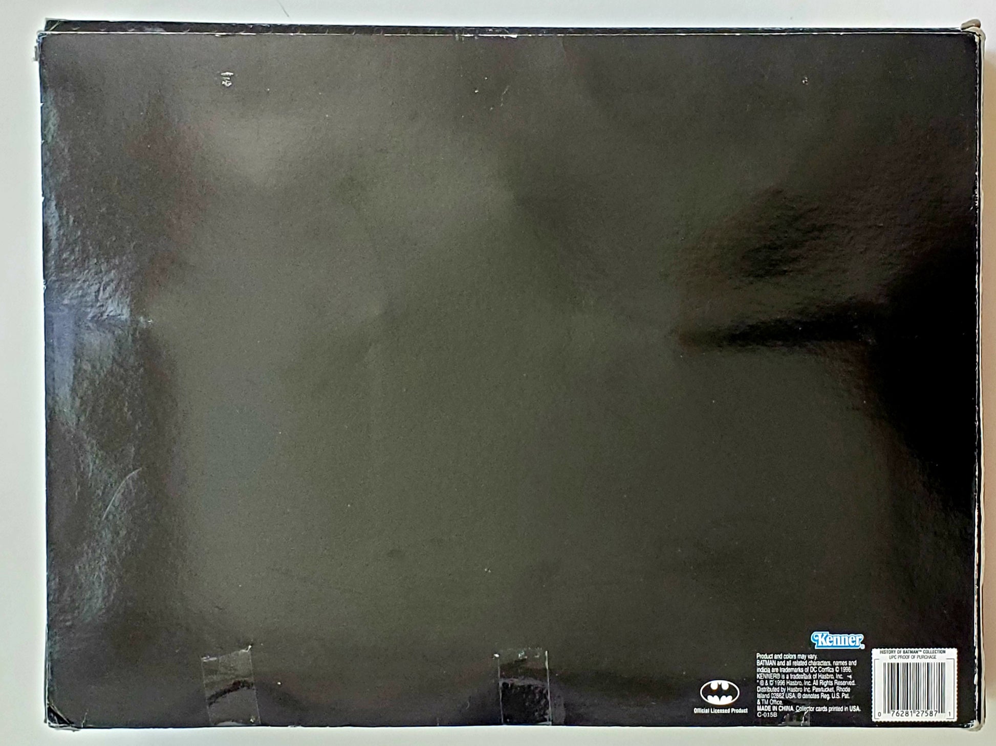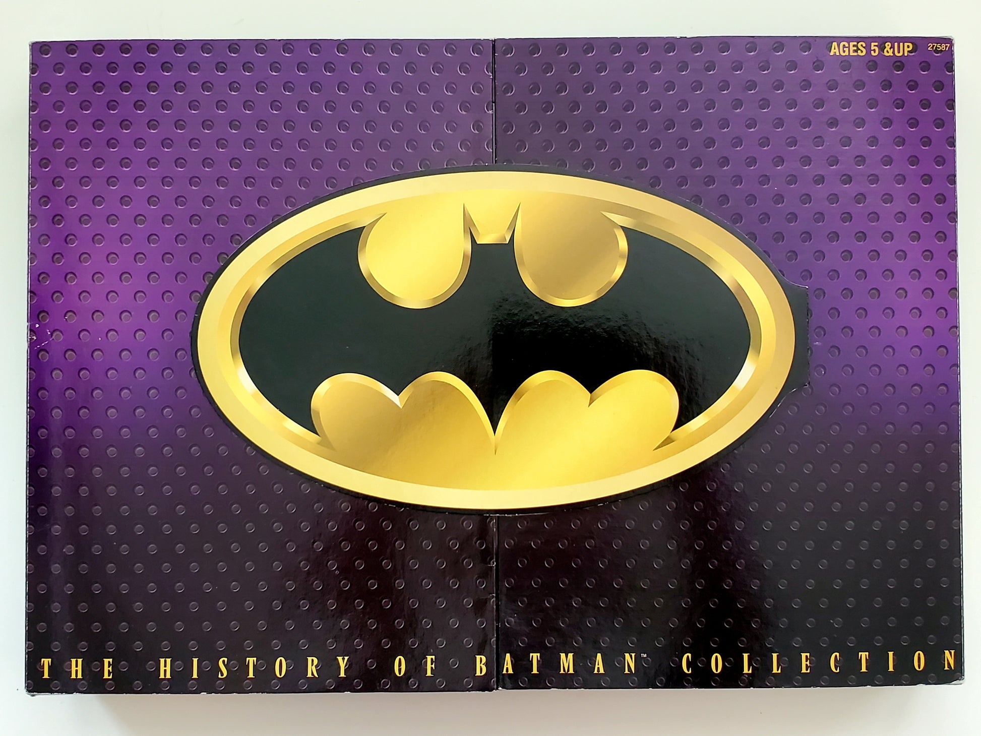 Made by Kenner exclusively for FAO Schwarz, the "History of Batman" set features a fold-out cover and three Batman figures with costumes from three different eras - the 1940s, 1970s and 1990s. Each era includes a 12-inch articulated figure with fabric costume and a reproduction of a comic cover. A hologram card is also included in this detailed collector set.