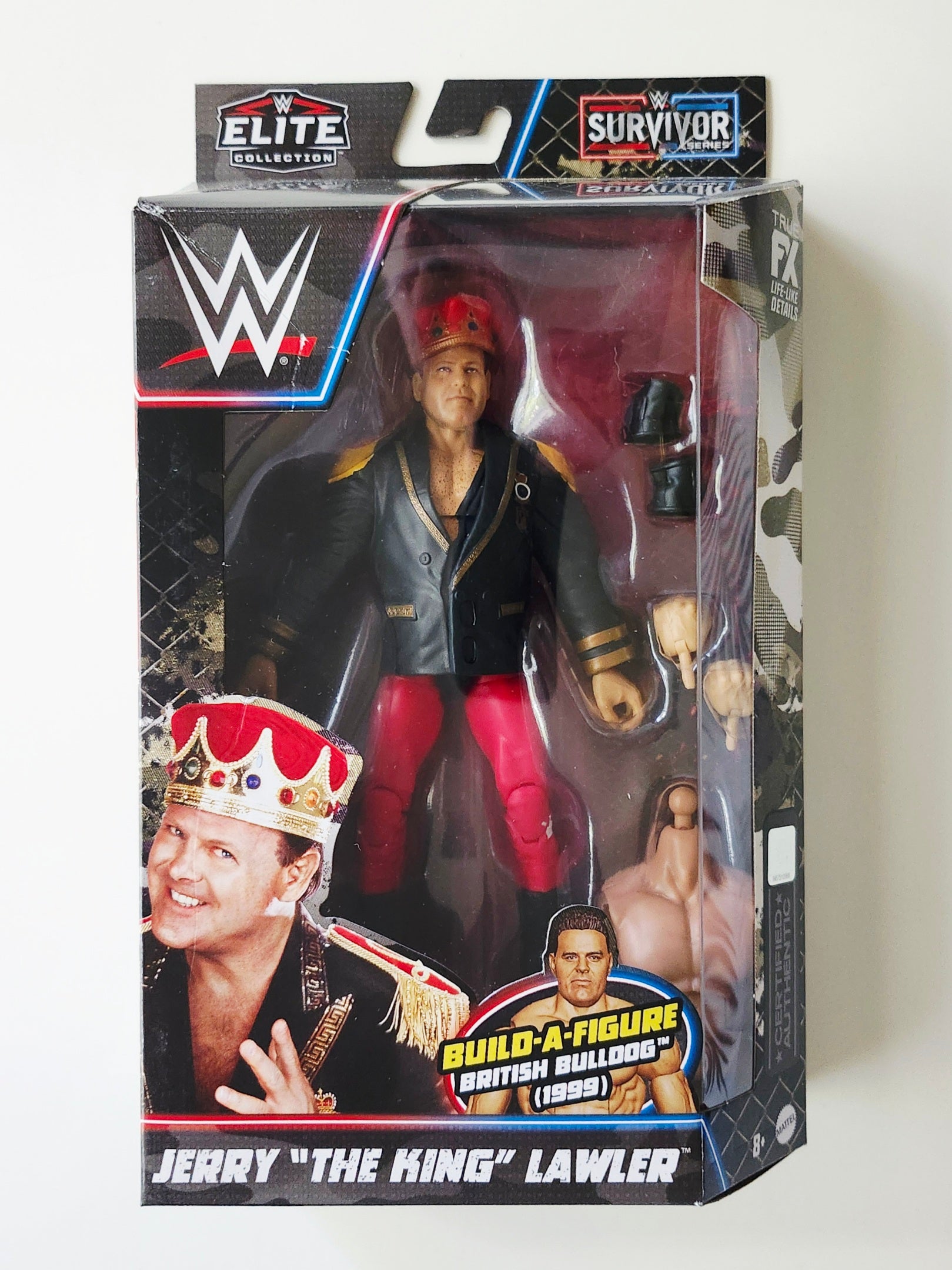 WWE Elite Survivor Series Jerry "The King" Lawler Action Figure and British Bulldog (1999) Build-A-Figure Piece