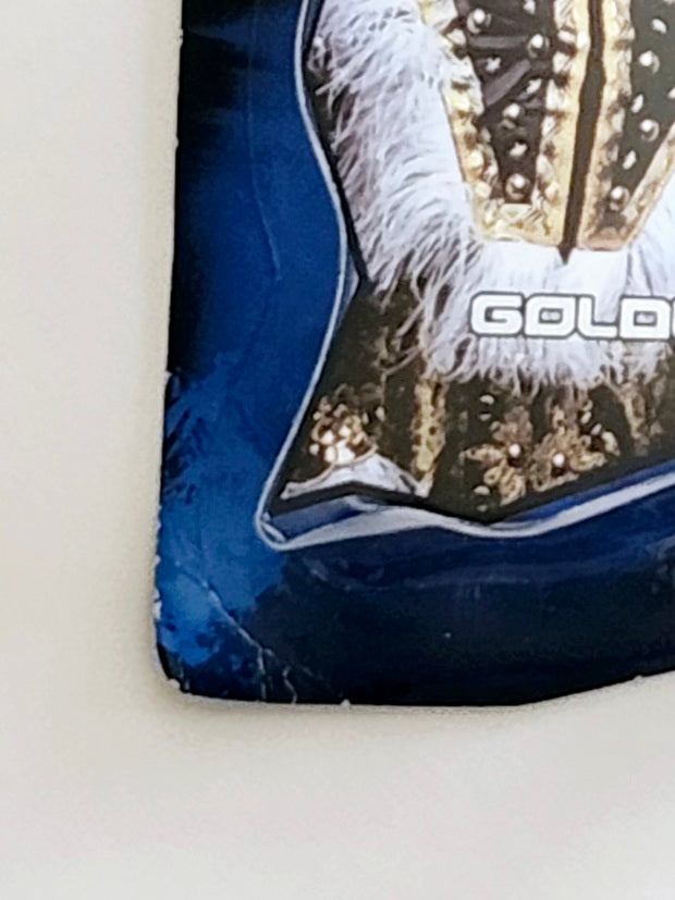 This Goldust figure in metallic gold color is fully poseable and comes with a microphone and a wig.
